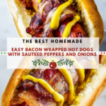 This Bacon Wrapped Hot Dogs recipe combines savory hot dogs with crispy bacon, grilled to perfection and topped with a flavorful sautéed vegetable mixture. Served in toasted buns with your choice of condiments, this quick and delicious dish is perfect for a casual meal or barbecue.