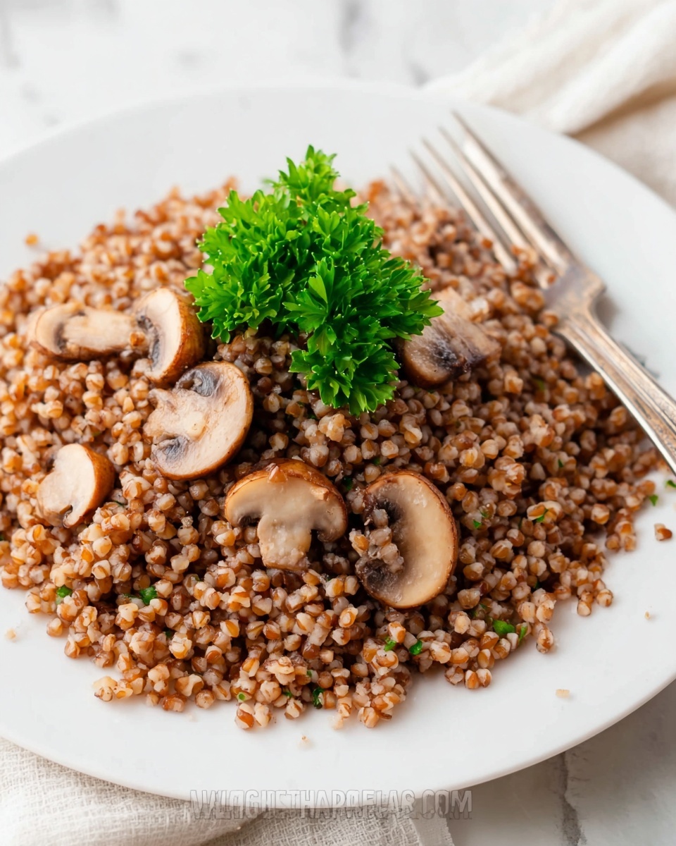 To elevate your Buckwheat with Mushrooms Recipe, sprinkle freshly chopped parsley or chives on top for a burst of fresh color and a mild herbal kick. A dash of cracked black pepper or a squeeze of lemon juice can also brighten the deep, earthy flavors beautifully.