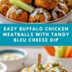 These Buffalo Chicken Meatballs are a flavorful and spicy appetizer or main dish option, baked to perfection and tossed in tangy buffalo sauce. Served with a creamy and cool bleu cheese yogurt dip, they offer a delicious balance of heat and creaminess. Ideal for game days, parties, or a flavorful weeknight dinner.