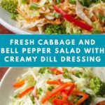 A refreshing and crunchy Cabbage and Bell Pepper Salad featuring thinly sliced cabbage, crisp broccoli, sweet bell peppers, and green onions tossed in a tangy lemon-dill dressing with a creamy touch of mayo and sour cream. Perfect as a light side dish or a healthy snack, this salad combines vibrant flavors and textures to delight your taste buds.