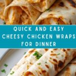 Delicious and easy-to-make Cheesy Chicken Wraps loaded with shredded chicken, melted cheddar cheese, fresh tomatoes, red onion, and cilantro, wrapped in warm flour tortillas and pan-grilled to golden perfection in just 20 minutes.