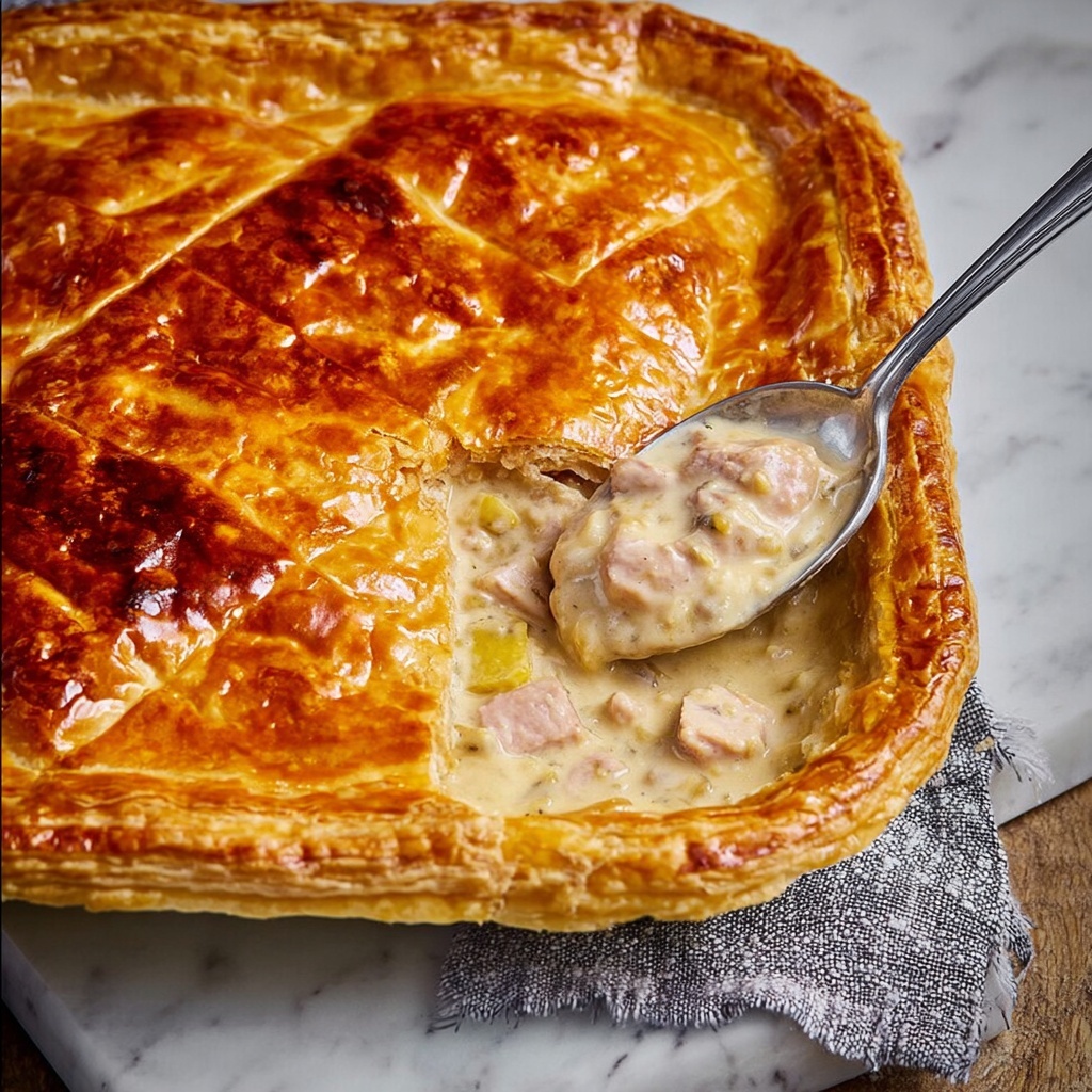 This Chicken and Leek Pie is a comforting British classic featuring tender chicken thighs, smoky streaky bacon, and soft leeks in a creamy, white wine-infused sauce. Encased in buttery puff pastry, this hearty pie makes an excellent family dinner or a satisfying meal for guests. The recipe balances rich flavors with aromatic herbs and is baked to golden perfection.