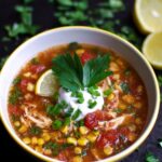 Reheat gently on the stovetop over medium-low heat, stirring occasionally to prevent sticking. If needed, add a splash of chicken broth or water to loosen up the consistency. Finish by stirring in fresh chopped cilantro and a little extra lime juice to revive the soup’s vibrant flavors after the warming process.