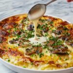 This Chicken and Mushroom Gratin is a creamy, comforting French-inspired baked casserole that combines tender chicken thighs sautéed with savory mushrooms in a rich, flavorful sauce. Topped with a golden crust of Parmesan, mozzarella, and breadcrumbs, it’s an elegant yet easy-to-make main dish perfect for family dinners or special occasions.