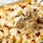 This Chicken Bacon Ranch Casserole is a creamy, comforting baked dish featuring tender shredded chicken, crispy bacon, and alfredo sauce, all perfectly tossed with pasta and topped with melted mozzarella cheese. It’s a quick and satisfying meal ideal for busy weeknights or family dinners.