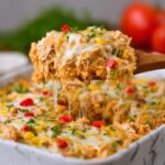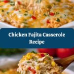 This Chicken Fajita Casserole is a flavorful and comforting weeknight meal combining seasoned chicken, sautéed peppers and onions, a creamy cheese mixture, and soft corn tortillas layered and baked to perfection. With layers of tender chicken fajita filling and gooey melted cheese, this easy-to-make casserole delivers all the vibrant flavors of classic fajitas in a convenient baked dish perfect for family dinners.