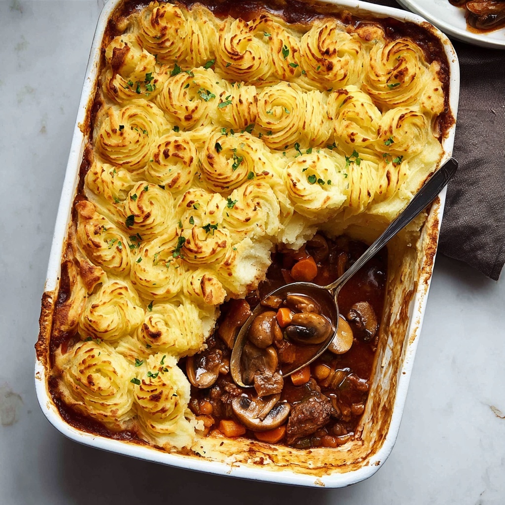 If you are craving a dish that feels like a warm hug on a plate, the Chicken Mushroom Pie with Duchess Potato Lid Recipe is absolutely going to become your new favorite comfort food. This pie boasts tender chicken thighs and earthy mushrooms bathed in a rich Guinness-infused gravy, all under a beautifully piped duchess potato crust that crisps up golden and inviting. Every bite brings together layers of flavor and texture that feel both indulgent and wonderfully homey — a true showstopper that’s surprisingly straightforward to make.