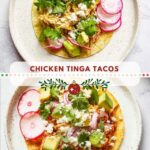 This Chicken Tinga Tacos recipe features tender, shredded chicken simmered in a smoky, spicy tomato and chipotle pepper sauce. Served on warm corn tortillas and topped with traditional garnishes like cotija cheese, radishes, red onion, cilantro, and avocado, these tacos deliver bold Mexican flavors perfect for any meal.