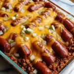 A comforting and easy-to-make Chili Cheese Dog Casserole featuring crescent roll dough layered with juicy hot dogs, rich chili, and melted cheddar cheese. Perfect for a family meal or casual get-together, this casserole combines classic flavors into one delicious baked dish.