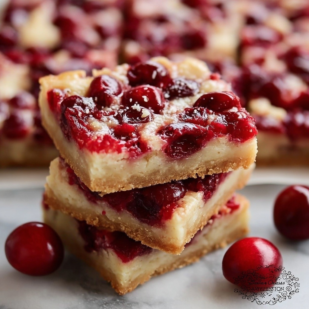 These bars pair wonderfully with a dollop of whipped cream or a scoop of vanilla ice cream, which mellows the cherry’s sweetness and adds a creamy contrast. A cup of hot coffee, tea, or even mulled wine makes a comforting accompaniment to balance the bars’ tender texture and bright flavors.