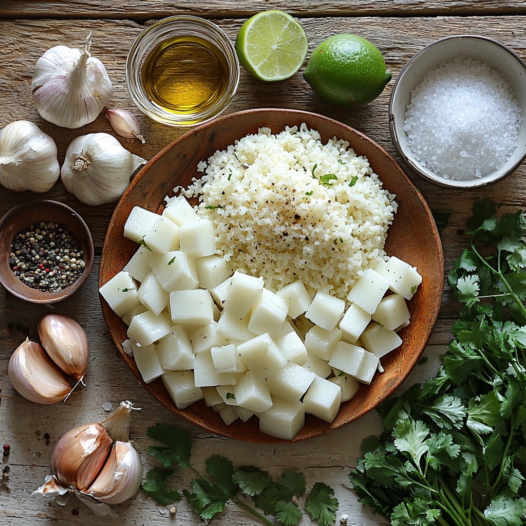 The magic of the Cilantro Lime Cauliflower Rice Recipe rests in its uncomplicated ingredients that each play a vital role. Every component adds a distinct note, from the aroma of garlic and onion to the vibrant pop of fresh lime and cilantro that brighten the dish.