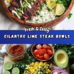 These Cilantro Lime Steak Bowls are a vibrant, flavorful meal perfect for a wholesome lunch or dinner. Featuring marinated and grilled flank steak seasoned with fresh lime, cilantro, and spices, served over a bed of rice with black beans, corn, cherry tomatoes, avocado, and optional feta cheese for added creaminess. This dish brings together fresh, zesty flavors with a satisfying mix of textures, making it a delicious and balanced bowl meal.
