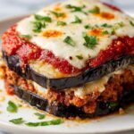 Let your Classic Homemade Eggplant Parmesan Recipe rest for about 10 minutes after baking. This resting period allows the flavors to meld and the dish to set, making it easier to slice and serving it with a sprinkle of fresh basil to finish.