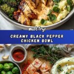 If you’re craving a dish that feels like a warm hug on a plate, this Creamy Black Pepper Chicken Bowl with Crispy Brussels & Mashed Potatoes Recipe is calling your name. Imagine tender, juicy chicken breasts smothered in a luxuriously creamy black pepper sauce, balanced perfectly by crispy roasted Brussels sprouts and velvety mashed potatoes all coming together in one bowl. It’s comfort food elevated to a whole new level, combining rich flavors and textures that will have you coming back for seconds – and maybe even thirds!