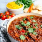 This Chicken Madras Curry is a flavorful and aromatic Indian-inspired dish made with tender chicken breasts simmered in a rich, spiced tomato and coconut milk sauce. The blend of madras curry powder along with cinnamon, cloves, and cayenne creates a perfect balance of heat and warmth, making this curry a satisfying meal for 4 to 5 people.