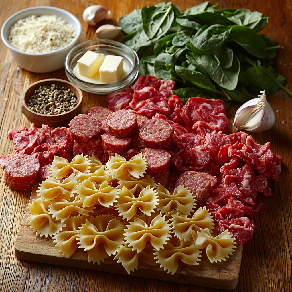 How to Make Creamy Garlic Butter Beef Bowtie Pasta with Italian Sausage & Spinach Recipe