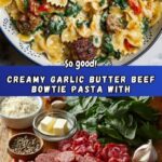 Creamy Garlic Butter Beef Bowtie Pasta with Italian Sausage & Spinach Recipe