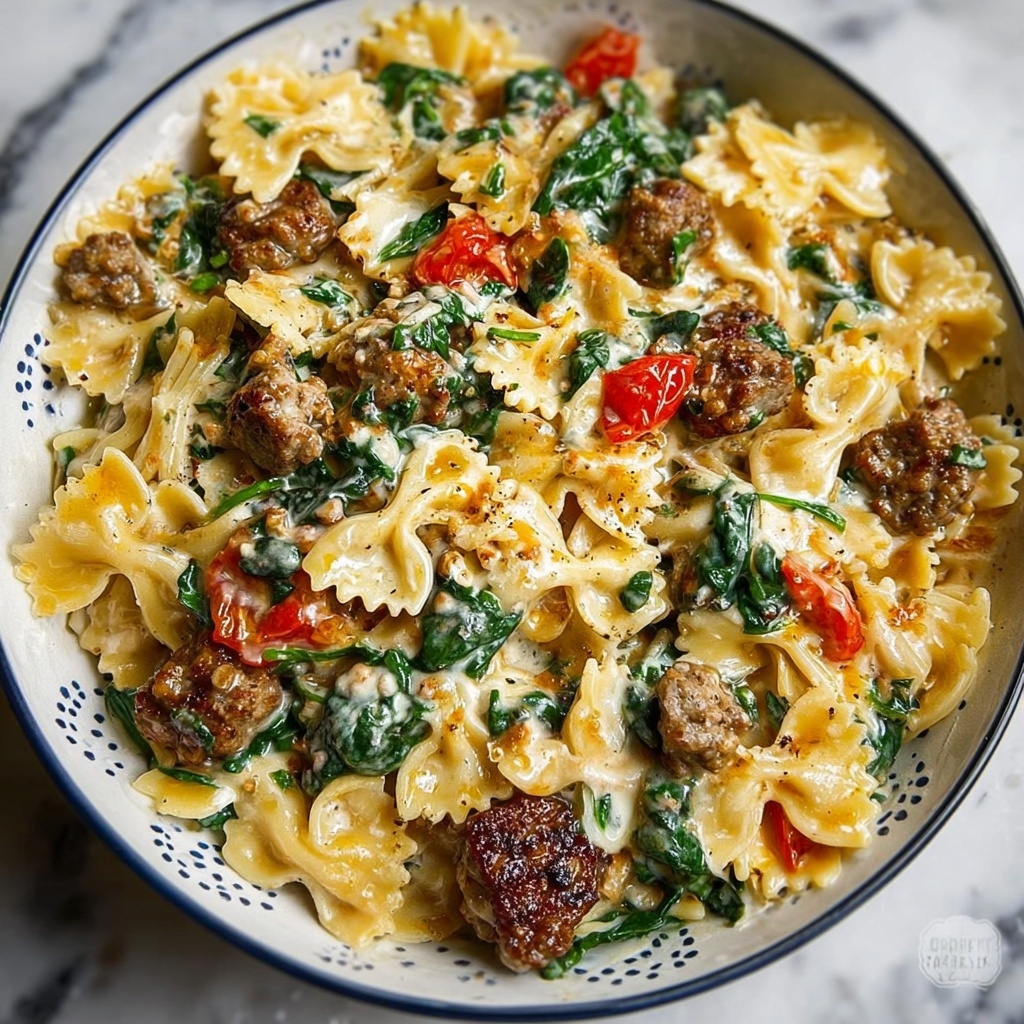 How to Serve Creamy Garlic Butter Beef Bowtie Pasta with Italian Sausage & Spinach Recipe