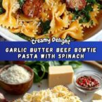A rich and indulgent creamy garlic butter beef bowtie pasta with fresh spinach, Italian sausage, and a luscious Parmesan-infused sauce, perfect for a comforting family dinner in just 30 minutes.