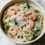 For a dinner party or special occasion, serve this Creamy Shrimp and Broccoli Pasta Recipe in individual shallow bowls to showcase the vibrant greens and pink shrimp against the smooth sauce. A drizzle of extra virgin olive oil and a lemon wedge on the side add brightness and an elegant touch.