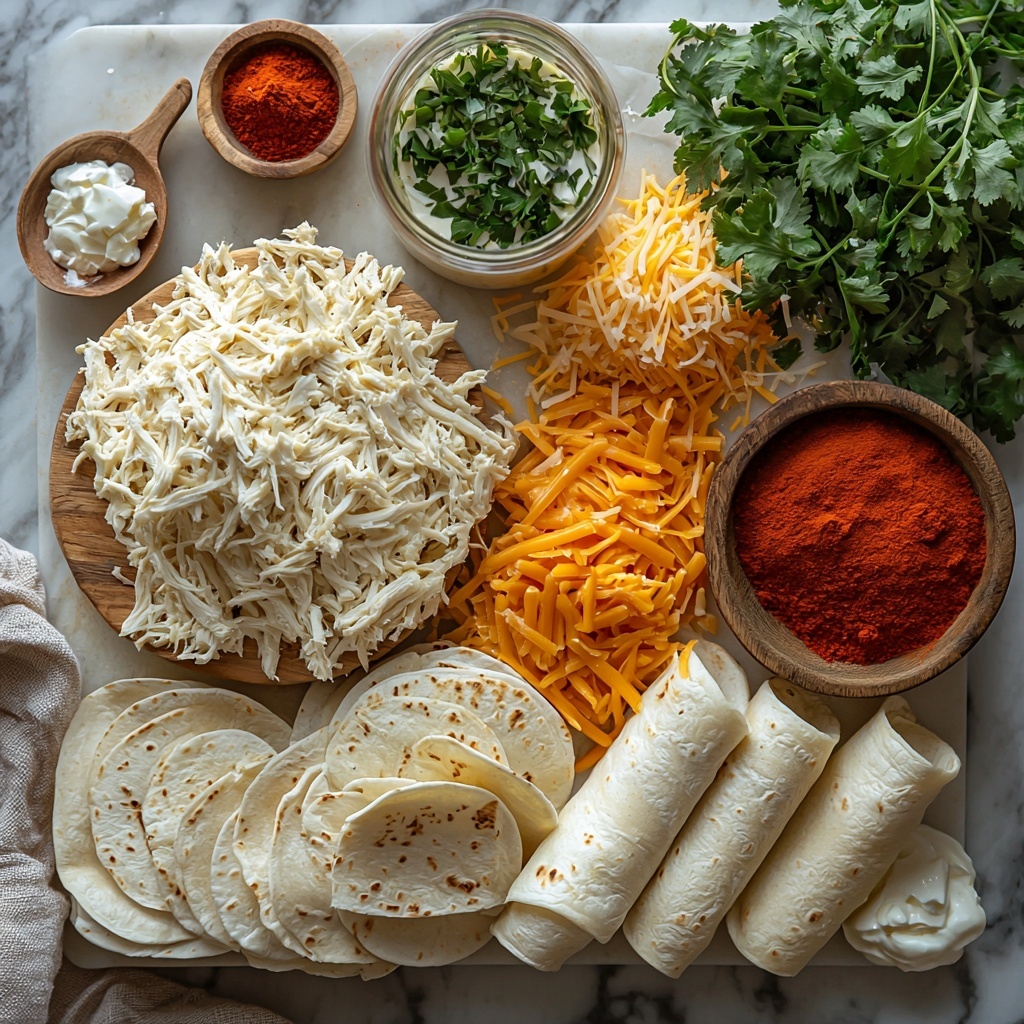 Begin by preheating your oven to 350°F (175°C). In a large bowl, combine your cooked shredded chicken with finely diced onion, minced garlic, cumin, chili powder, smoked paprika, salt, and black pepper. Mixing these ingredients now ensures every bite of chicken is bursting with flavor, setting the foundation for this dish’s incredible taste.