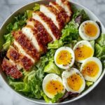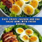 A wholesome and fresh Crispy Chicken & Egg Salad Bowl featuring tender pan-seared chicken breast, protein-packed hard-boiled eggs, sweet fresh banana slices, and vibrant mixed greens. This balanced bowl combines savory and sweet flavors for a nutritious meal perfect for lunch or a light dinner.