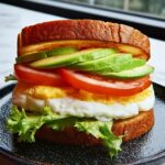 This Easy Vegetarian Breakfast Egg Sandwich is a wholesome and satisfying morning meal featuring fluffy scrambled eggs, fresh tomato, creamy avocado, and baby spinach layered on a toasted whole wheat English muffin with melted cheddar cheese. Perfect for a quick, nutritious breakfast that combines protein, healthy fats, and fiber.