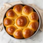 - Shape Rolls: Once the dough has doubled in size, turn it out onto a lightly floured surface. Divide the dough into 12 equal pieces. Gently roll each piece into a ball and place them into a greased 9-inch cake pan. Cover and let the rolls rise again until doubled in size, approximately 45-60 minutes.
