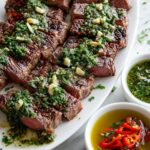 - Slice and serve: Slice the steak against the grain into thin strips. Serve with a generous spoonful of chimichurri sauce on top or on the side for dipping.