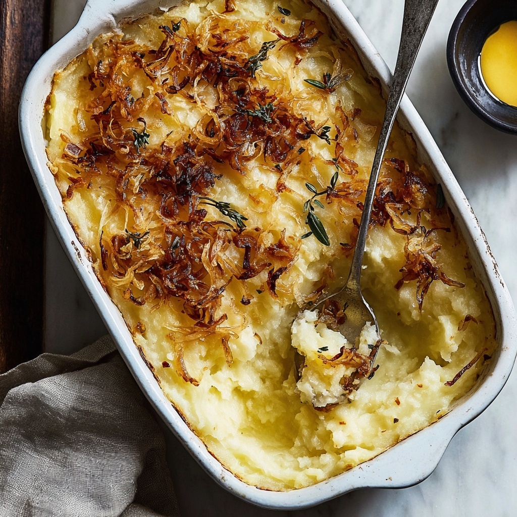 This comforting French Onion Funeral Potatoes recipe combines crispy golden hash browns with a creamy cheesy base and a delicious topping of caramelized, crispy French onions. Perfect as a hearty side dish for gatherings, it delivers rich flavors and satisfying textures in every bite.