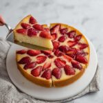 - Add Strawberry Topping: Arrange the sliced fresh strawberries evenly on top of the batter in a single layer. Sprinkle the remaining 2 teaspoons of granulated sugar over the strawberries to enhance their sweetness and caramelize them slightly during baking.