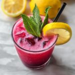 This Frozen Hibiscus Lemonade is a refreshing and vibrant beverage perfect for cooling down on a hot day. Made by steeping dried hibiscus flowers to create a tart and floral infusion, then blended with fresh lemon juice, honey, ice, and water to create a smooth, slushy lemonade with natural sweetness and bright citrus flavors.