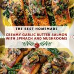 Garlic Butter Salmon with Spinach and Mushrooms in Creamy Sauce Recipe
