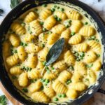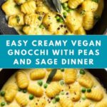 This creamy vegan gnocchi recipe features tender gnocchi cooked in a luscious dairy-free cream sauce infused with fresh sage, garlic, and white wine. Perfectly comforting and easy to make, it’s flavored with vegan butter and a hint of Dijon mustard, finished with sweet peas and sprinkled with vegan Parmesan for an elegant touch. Ideal for a quick weekday meal or a cozy dinner.