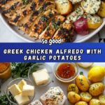 How to Make Greek Chicken Alfredo with Garlic Potatoes and Spicy Hot Honey Tahini Pesto Recipe