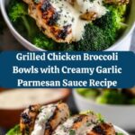 Delicious and healthy Grilled Chicken Broccoli Bowls featuring tender grilled chicken breasts served over steamed broccoli and topped with a rich, creamy garlic Parmesan sauce. Ready in just 30 minutes, this meal is perfect for a quick weeknight dinner packed with protein and greens.