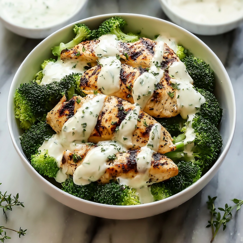 Slice the grilled chicken breasts into beautiful, juicy strips. In each bowl, arrange a generous bed of the steamed broccoli, layer the sliced chicken on top, and then drizzle the creamy garlic Parmesan sauce generously over everything. This step is where all the flavors come together in a perfect harmony that makes this dish so special.