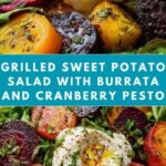 This Grilled Sweet Potato & Burrata Salad with Cranberry Pepita Pesto is a vibrant, flavorful dish featuring tender grilled sweet potato rounds topped with creamy burrata cheese and a tangy, nutty cranberry pepita pesto. Perfect as a light meal or elegant side, this recipe balances smoky, sweet, and fresh herbaceous notes for a delicious and visually appealing salad.