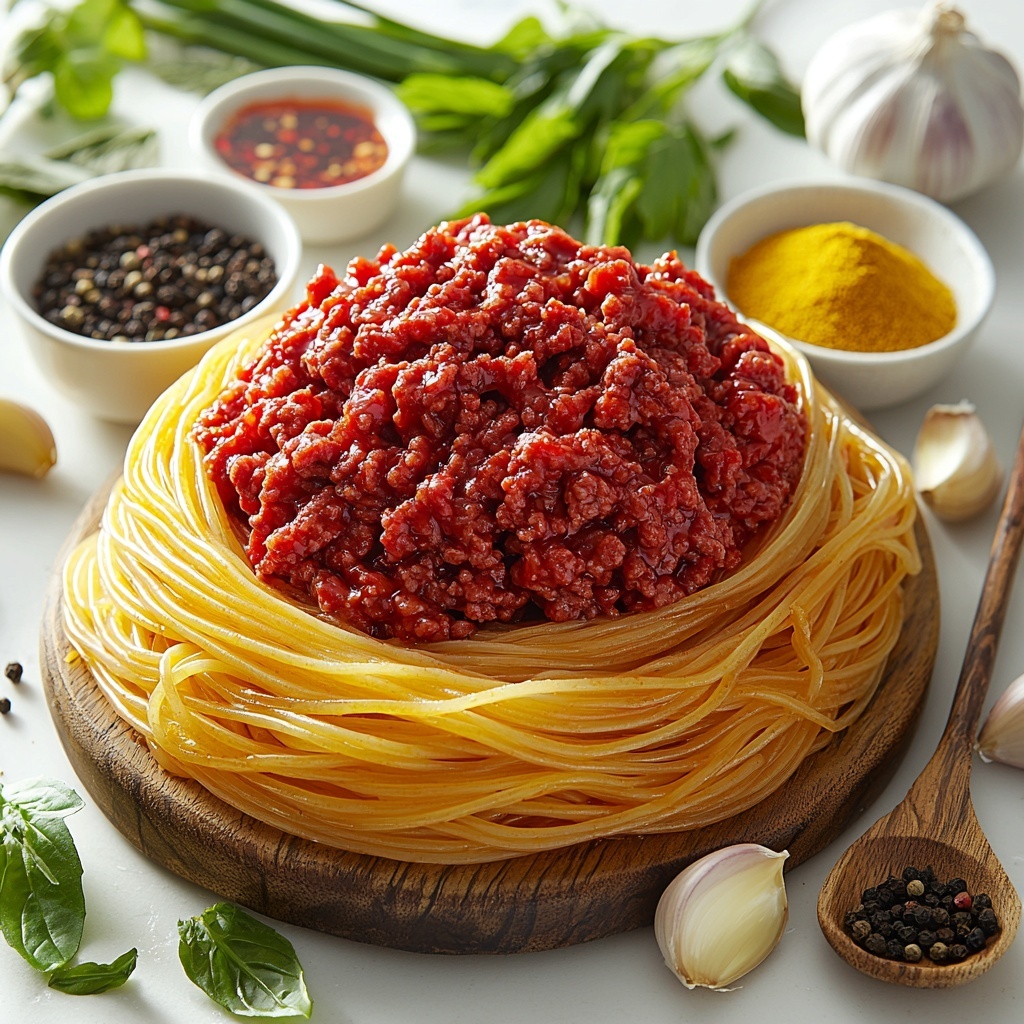 This Ground Beef Mongolian Noodles recipe features tender linguine tossed in a flavorful savory sauce made with ground beef, fresh ginger, garlic, and a balance of sweet and salty ingredients. Ready in just 30 minutes, this dish combines Asian-inspired flavors with an easy, stovetop cooking method, perfect for a satisfying weeknight dinner.