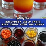 - Garnish: Before serving, top each jello shot with candy corn or a gummy worm to add a fun and festive Halloween touch.