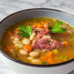 This hearty Ham and Bean Soup is a comforting dish made with tender Great Northern beans, savory ham bone, and diced leftover ham. Loaded with vegetables and slow-simmered to develop rich flavors, it’s perfect for a warming meal that’s easy to prepare and satisfying.