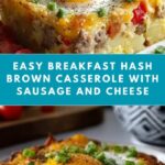 Sprinkle the cooked breakfast sausage evenly across the hash browns. If you’re using bacon or ham instead, make sure it’s nicely distributed for every bite to have that meaty burst. Then, cover it all with a generous layer of shredded cheddar cheese, which will melt and bubble up in the oven to create a luscious top layer.