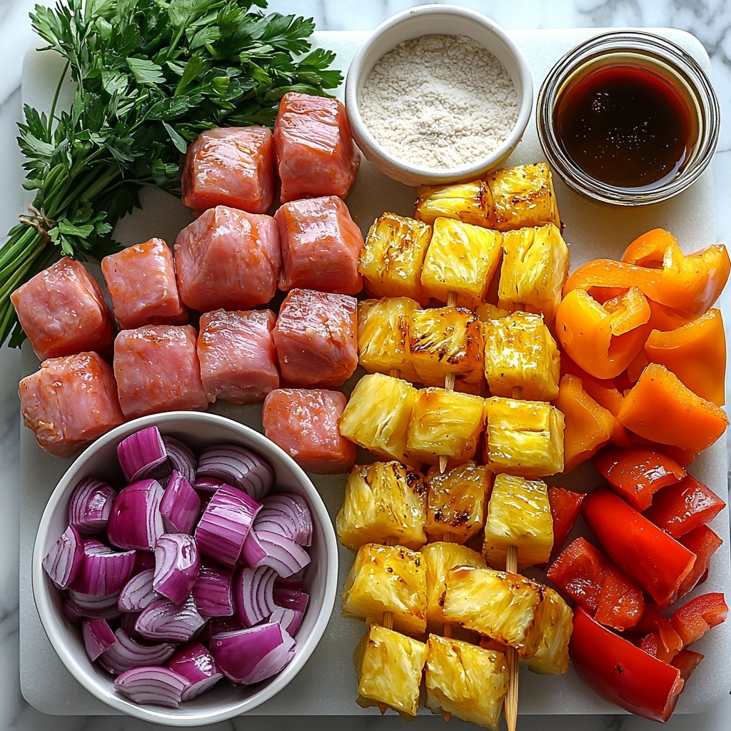 The beauty of this Hawaiian Chicken Kabobs Recipe lies in its simple, fresh ingredients that each play a vital role. From the tender chicken to the natural sweetness of pineapple and the zing of red pepper and onion, every component makes the flavor pop. Plus, the marinade blends it all together with depth and a hint of caramelized goodness.