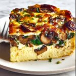 This Herb Mushroom Breakfast Bake is a wholesome, savory dish perfect for a nutritious start to your day. Combining sautéed mushrooms and spinach with a flavorful egg mixture, seasoned with garlic, onion, and thyme, then topped with melted cheese and baked to golden perfection. It’s an easy, crowd-pleasing breakfast or brunch option packed with protein and fresh herbs.