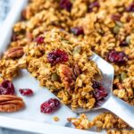 If you prefer chunkier granola clusters, you can press the mixture firmly into the baking sheet before baking and avoid stirring it halfway through the cooking time.