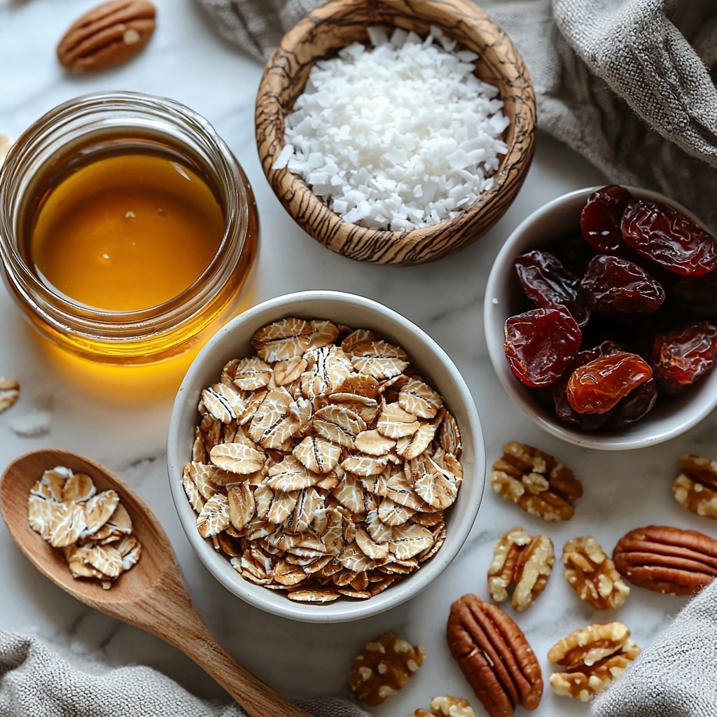 Gathering simple, wholesome ingredients is what makes this Homemade Granola with Coconut, Pecans, and Dried Cherries Recipe so irresistible. Each element plays a crucial role—from the oats that provide hearty texture to the pecans and coconut flakes that deliver richness and depth, while the dried cherries add a pop of vibrant color and natural sweetness.