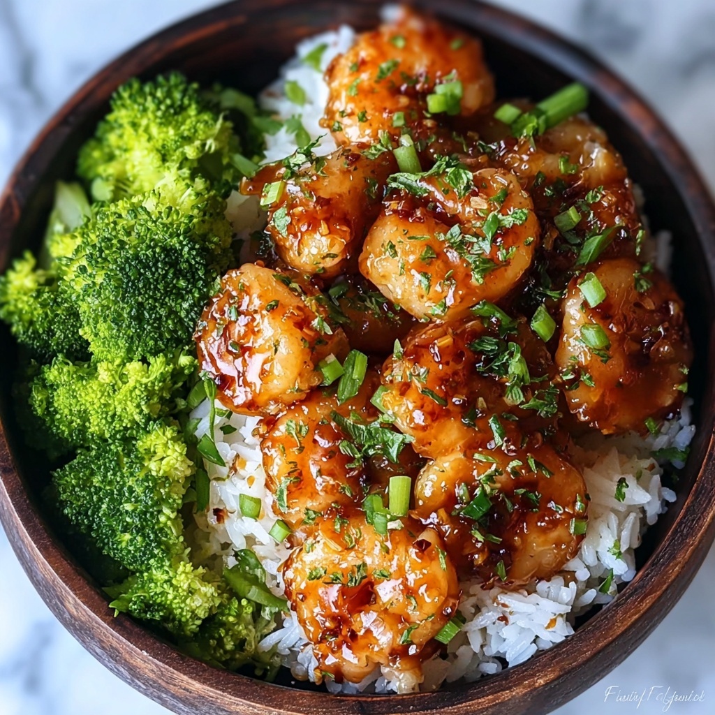- Assemble the bowls: Serve the glazed shrimp over cooked white rice or quinoa. Top the bowls with steamed or sautéed broccoli and garnish with finely sliced green onions for a fresh finish.