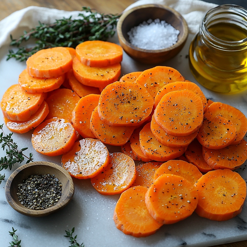 - Prepare Carrots: Peel and slice the carrots into even 1/2-inch thick pieces to ensure uniform roasting.
