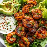 This salad stands beautifully on its own, but if you want to round your meal out, serve it alongside a crusty baguette or garlic bread. A light soup, such as tomato basil or chilled cucumber, also pairs wonderfully, complementing the spicy shrimp without overpowering the dish.