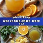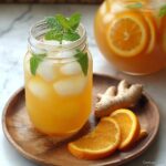 This refreshing Iced Orange Ginger Green Tea combines the vibrant flavors of fresh orange and lemon juices with the warmth of ginger and the antioxidant power of green tea. Naturally sweetened with honey and garnished with fresh mint, this invigorating beverage is perfect for a cooling summer drink or a healthy pick-me-up any time of the day.